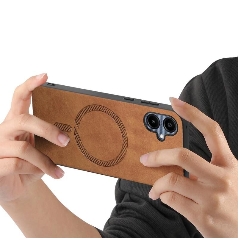 Θήκη κινητού τηλεφώνου Samsung Galaxy A06 4G, μονόχρωμη, ρετρό, με μαγνητική σύνδεση (Magsafe), από δερματίνη (PU) (Καφέ)