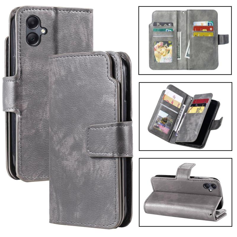 Για Samsung Galaxy A06 4G Δερμάτινη Θήκη Πορτοφόλι με 9 Κάρτες (Γκρι)
