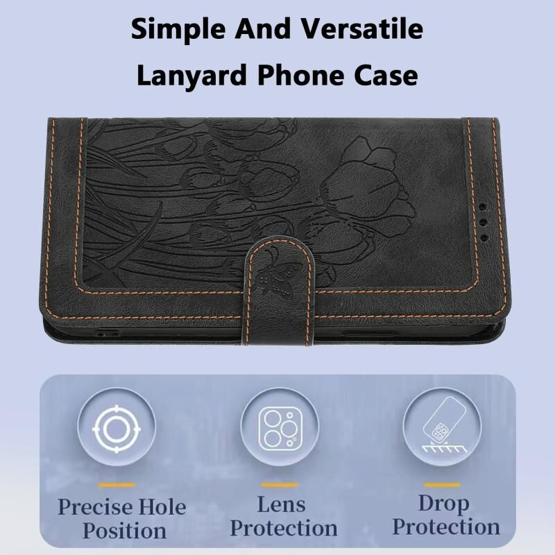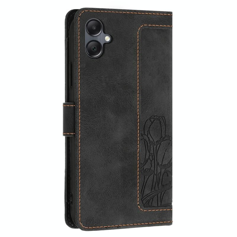 Θήκη τηλεφώνου δερμάτινη ανάγλυφη με λουλούδια Tulips για Samsung Galaxy A06 4G με κορδόνι (Μαύρο)
