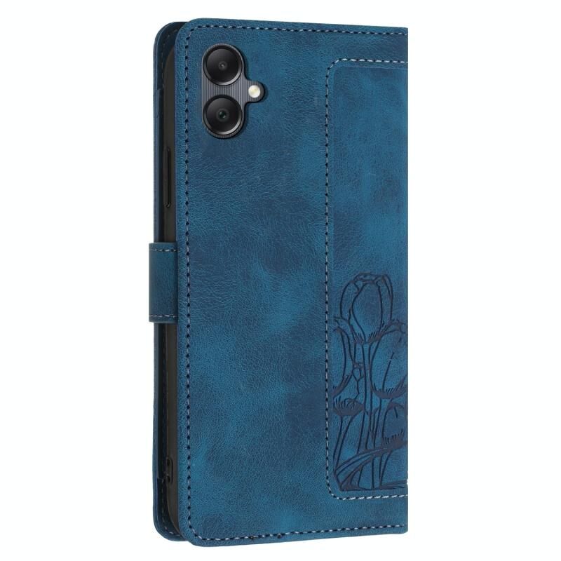 Θήκη τηλεφώνου δερμάτινη ανάγλυφη με λουλούδια Tulips για Samsung Galaxy A06 4G με κορδόνι (Μπλε)