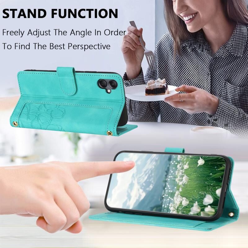 Θήκη τηλεφώνου δερμάτινη ανάγλυφη με λουλούδια Tulips για Samsung Galaxy A06 4G με κορδόνι (Ροζ)