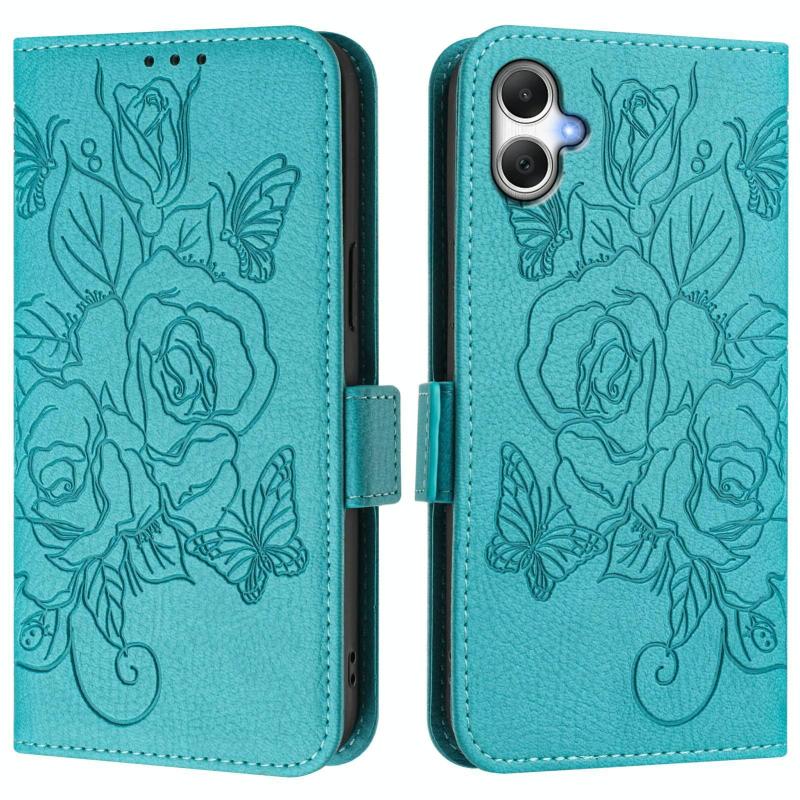 For Samsung Galaxy A06 5G / 4G Embossed Rose RFID Anti-theft Leather Phone Case(Light Blue)