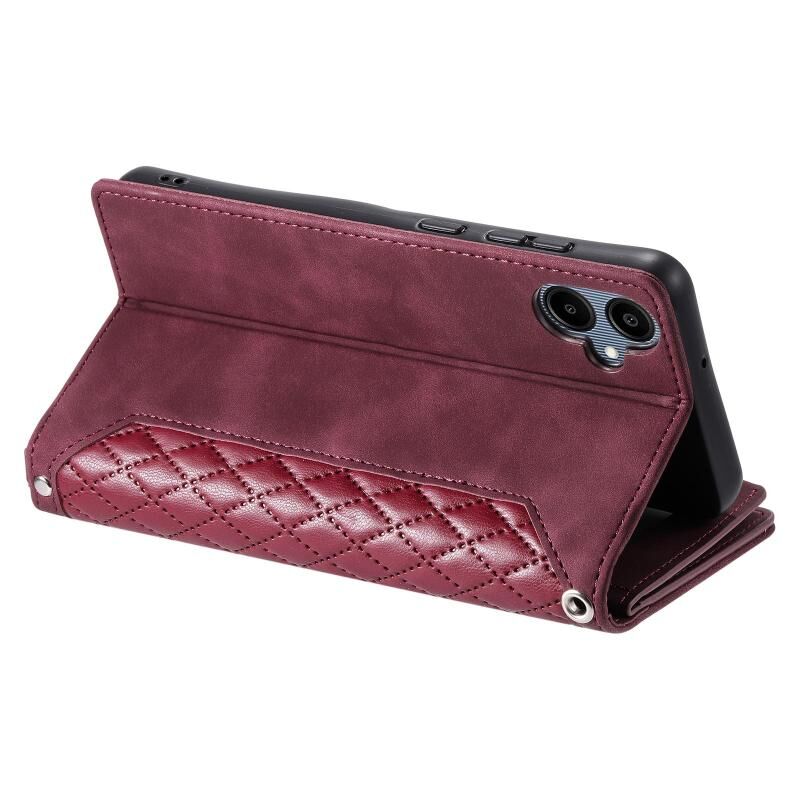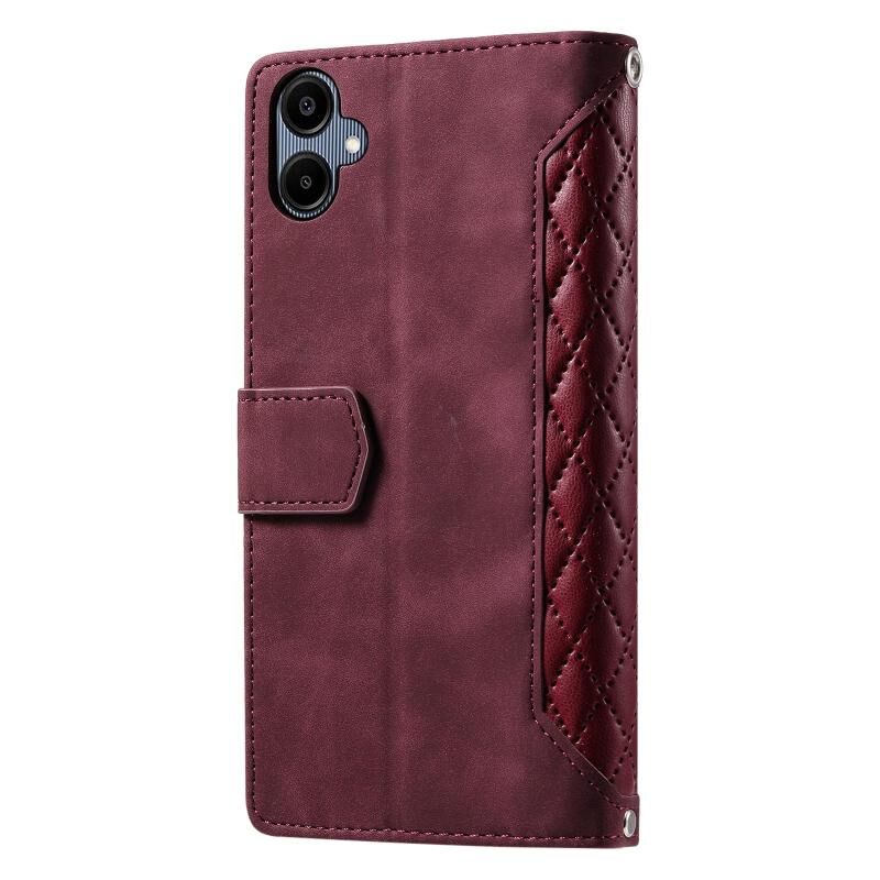 Θήκη κινητού τηλεφώνου Samsung Galaxy A06 5G / 4G με υφή πλέγματος, δερμάτινη με φερμουάρ και λουρί (Μωβ)