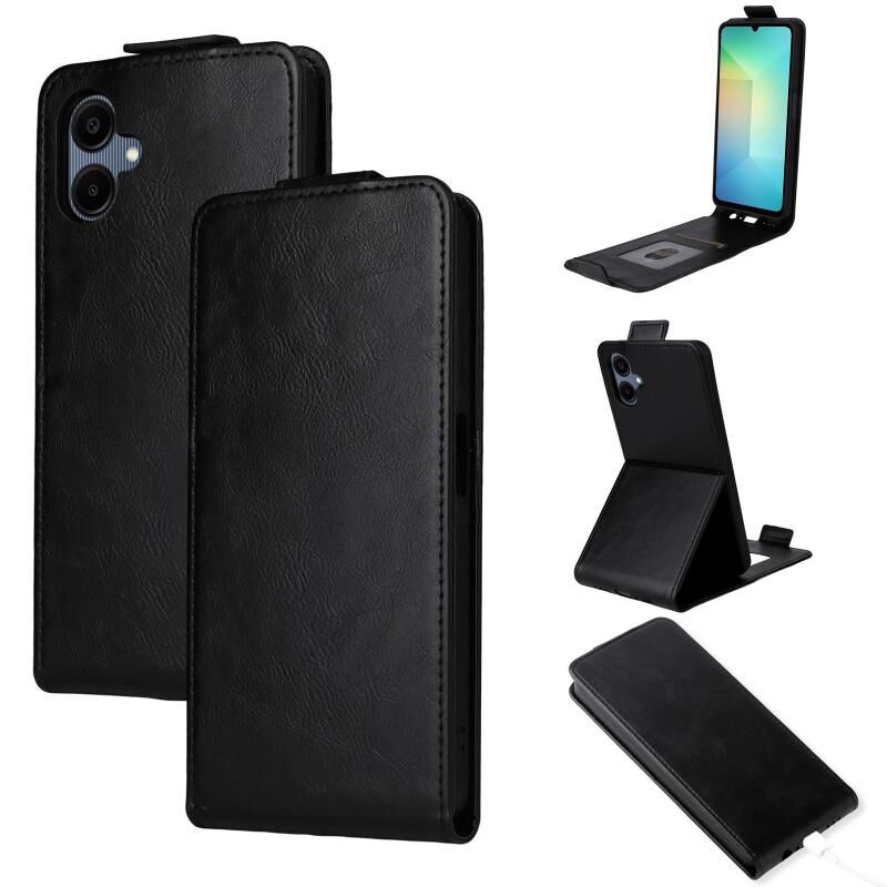 Θήκη τηλεφώνου Samsung Galaxy A06 5G / 4G από δέρμα με μαγνητικό κάθετο άνοιγμα και αγκράφα (Μαύρο)