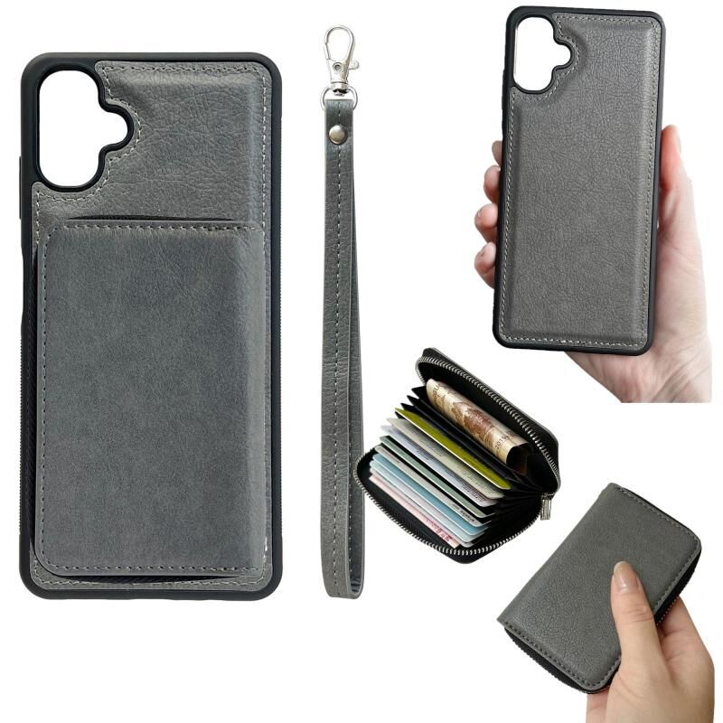 Για Samsung Galaxy A06 5G / 4G Αμιγές χρώμα φερμουάρ 11-κάρτα Slots τσάντα υπόθεση τηλεφώνου με κορδόνι (γκρι)