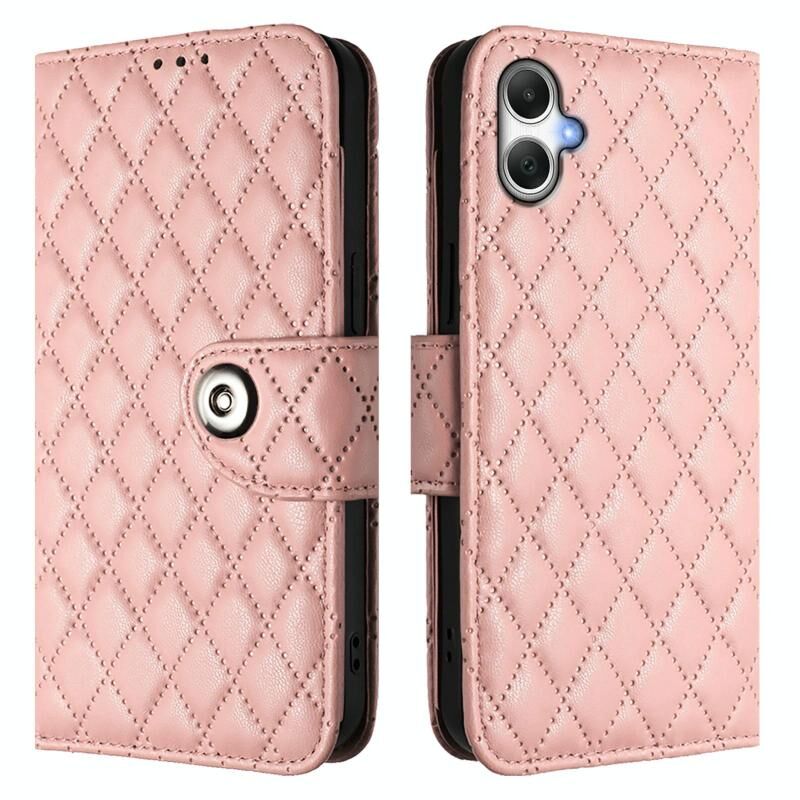 Θήκη τηλεφώνου Samsung Galaxy A06 5G με δερμάτινη υφή ρόμβου και λουρί (Κοραλλί ροζ)