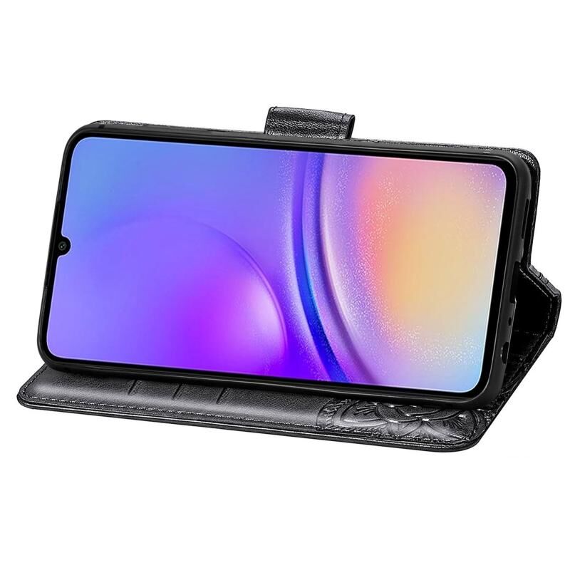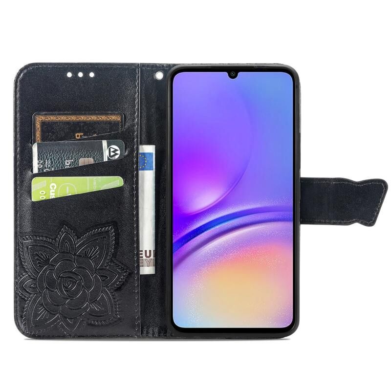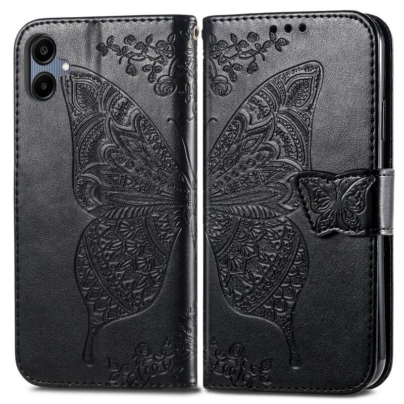 Θήκη τηλεφώνου Samsung Galaxy A06 με ανάγλυφο σχέδιο πεταλούδας και λουλουδιών από δέρμα (Μαύρο)