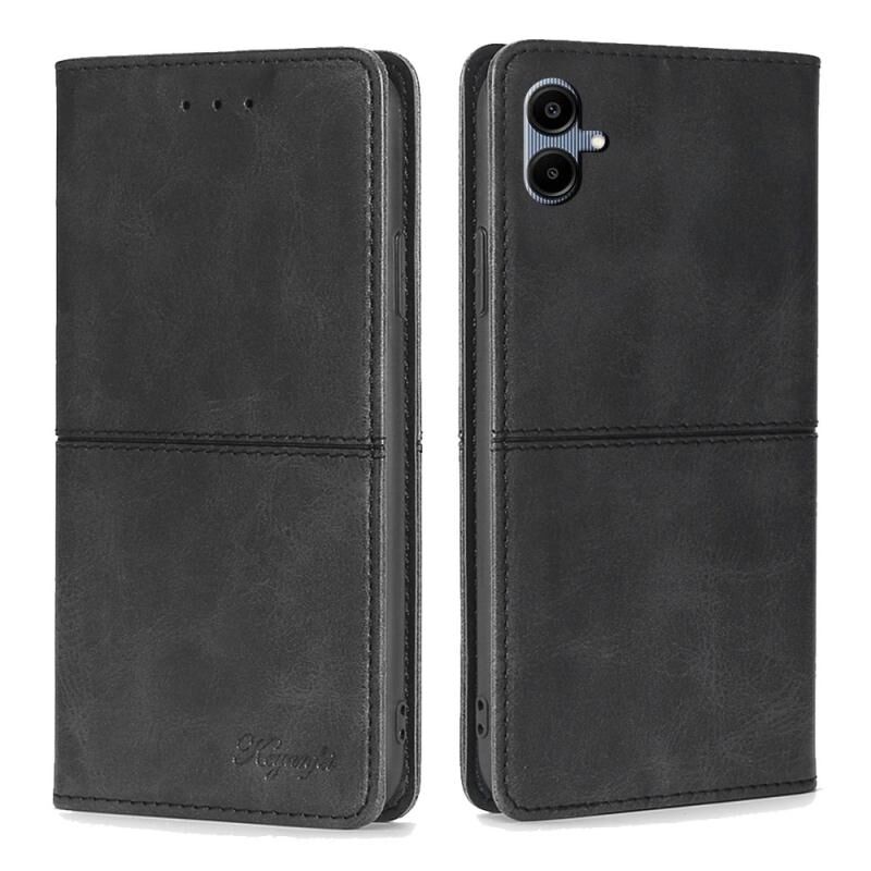 Θήκη κινητού τηλεφώνου Samsung Galaxy A06 με μαγνητικό δέρμα και υφή αγελάδας (Μαύρο)