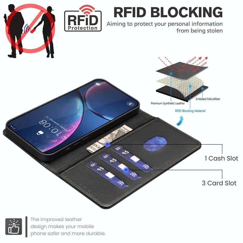 2. Πρακτική Λειτουργία Θήκης Καρτών: 3 υποδοχές καρτών και 1 θήκη για μετρητά για να αποθηκεύσετε τις πιστωτικές σας κάρτες, μετρητά ή μικρές σημειώσεις για καθημερινή χρήση. Ο σχεδιασμός της οπής στην επιφάνεια της υποδοχής καρτών διευκολύνει την αφαίρεση της κάρτας.