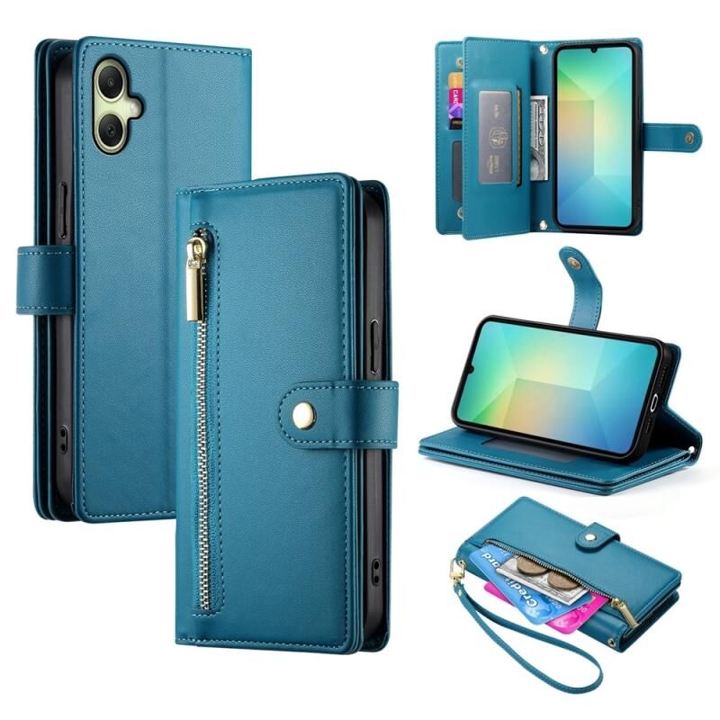 Για Samsung Galaxy A06 Nine Card-slot φερμουάρ πορτοφόλι τσάντα δερμάτινη θήκη τηλεφώνου (μπλε)
