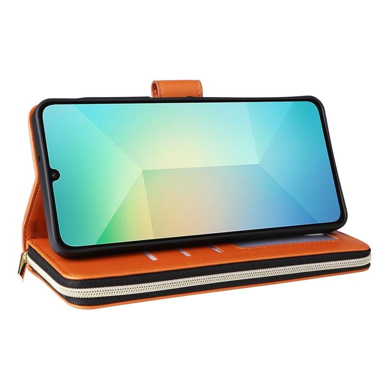 Για Samsung Galaxy A06 Εννέα-κάρτα Slots φερμουάρ πορτοφόλι τσάντα δερμάτινη θήκη τηλεφώνου (Καφέ)