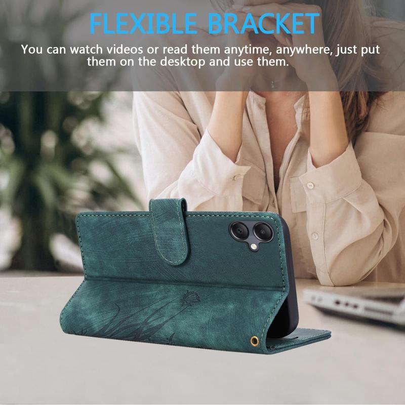 For Samsung Galaxy A06 Orchid Butterfly Embossed Leather Phone Case(Green)