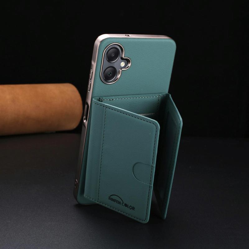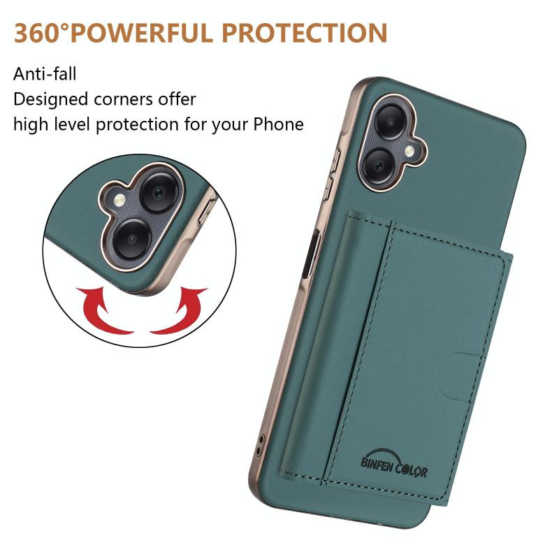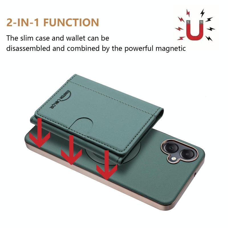 For Samsung Galaxy A06 Solid Color Horizontal Magnetic Card Bag RFID MagSafe Phone Case(Green)