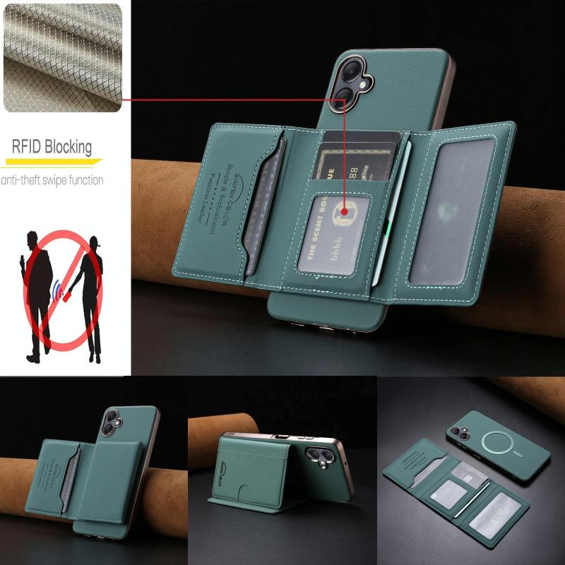 2. Magnetic Tri-Fold Wallet Design: Features a horizontal fold with a strong magnetic closure for easy access and secure storage.