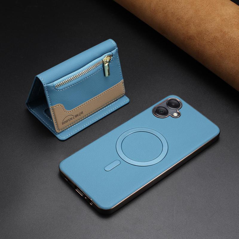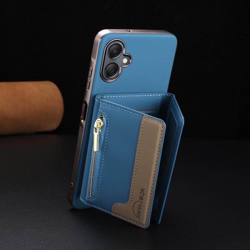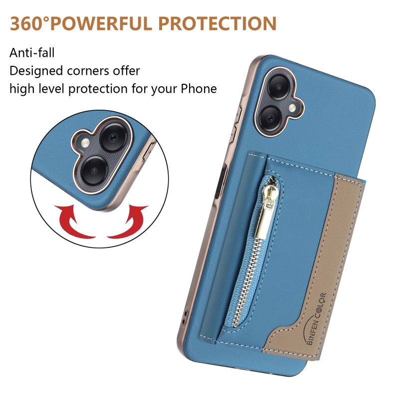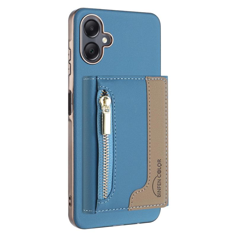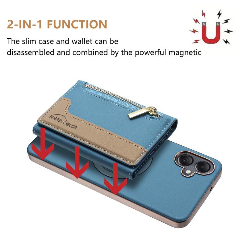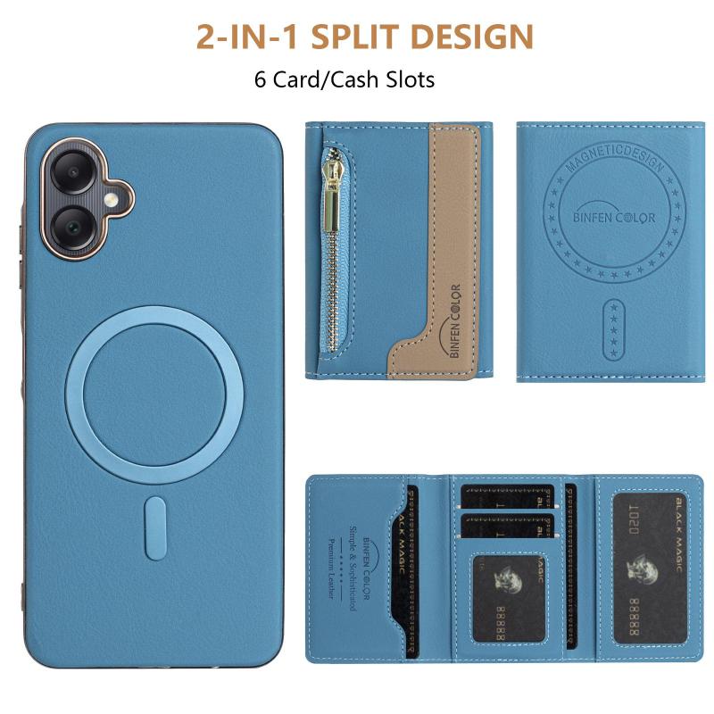 For Samsung Galaxy A06 Zipper Horizontal Magnetic Card Bag RFID MagSafe Phone Case(Baby Blue)