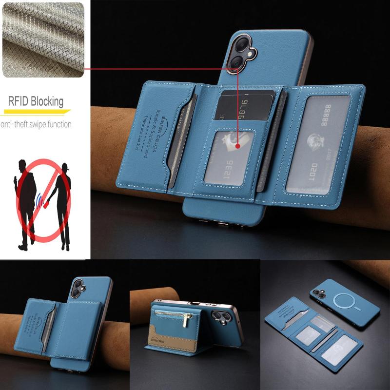 2. Magnetic Tri-Fold Wallet Design: Features a horizontal fold with a strong magnetic closure for easy access and secure storage.