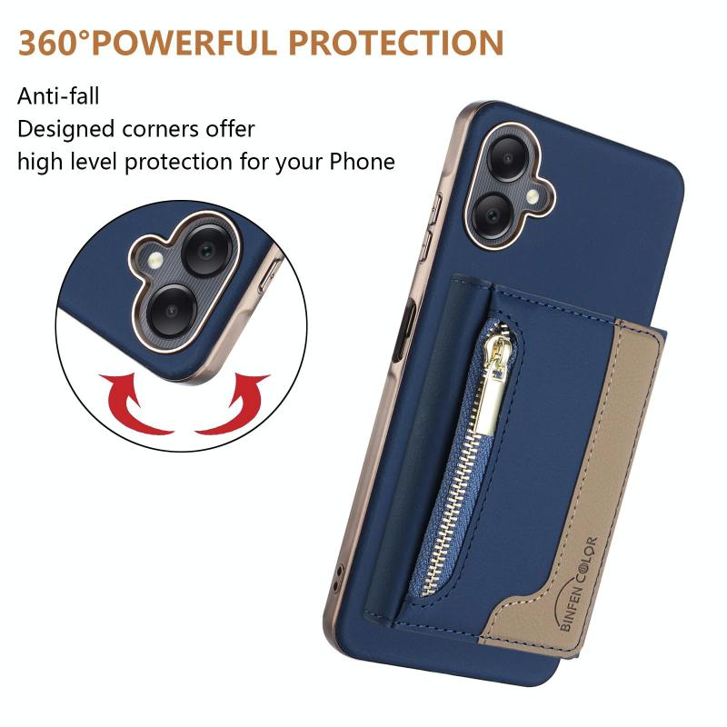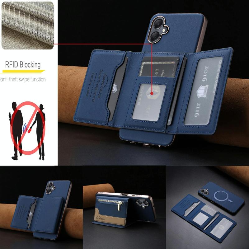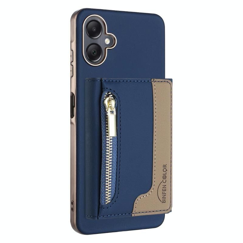 For Samsung Galaxy A06 Zipper Horizontal Magnetic Card Bag RFID MagSafe Phone Case(Dark Blue)