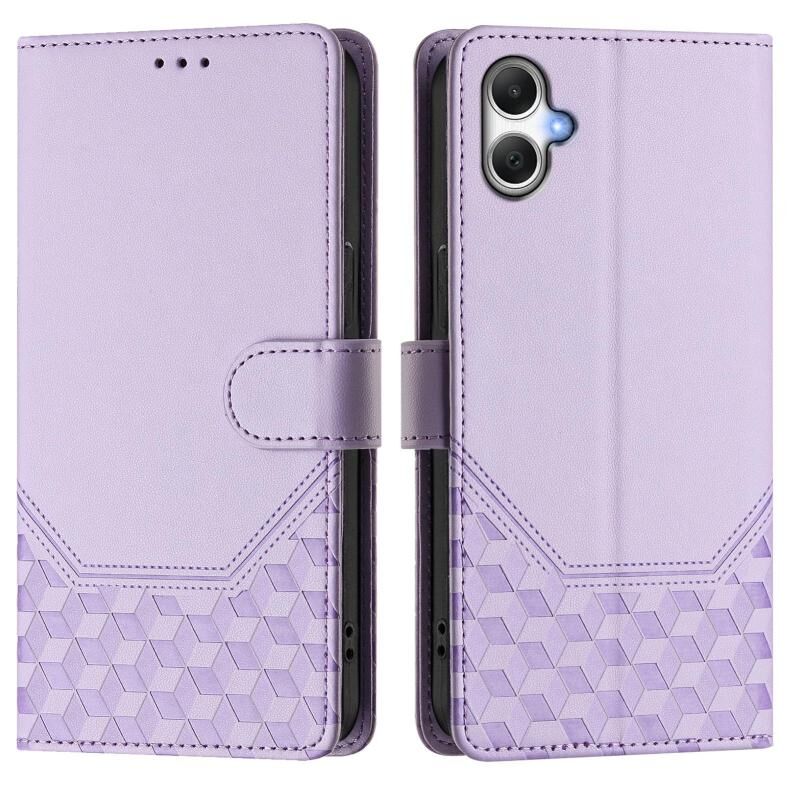 Θήκη τηλεφώνου Samsung Galaxy A07 4G από δέρμα με ανάγλυφο σχέδιο κυψελωτού (ανοιχτό μωβ)