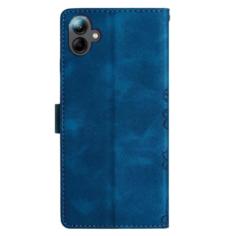 Θήκη τηλεφώνου Samsung Galaxy A07 5G Cherry Blossom Butterfly με ανάγλυφη υφή PU (Μπλε)