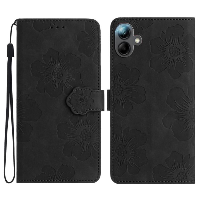 Θήκη τηλεφώνου δερμάτινη με ανάγλυφο σχέδιο λουλουδιών για Samsung Galaxy A07 5G (Μαύρο)