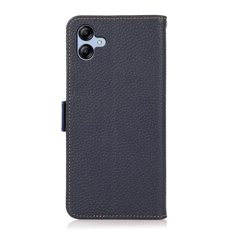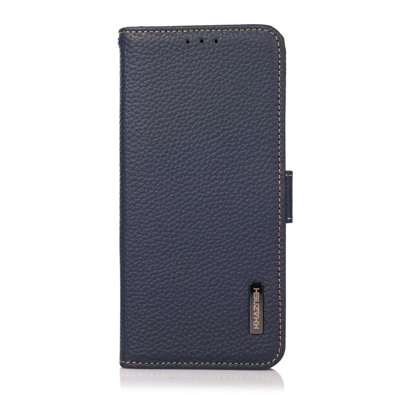 For Samsung Galaxy A07 5G KHAZNEH Side-Magnetic Litchi Genuine Leather RFID Phone Case(Blue)