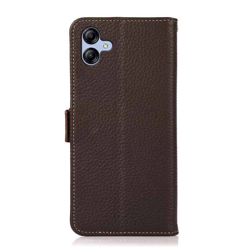 For Samsung Galaxy A07 5G KHAZNEH Side-Magnetic Litchi Genuine Leather RFID Phone Case(Brown)