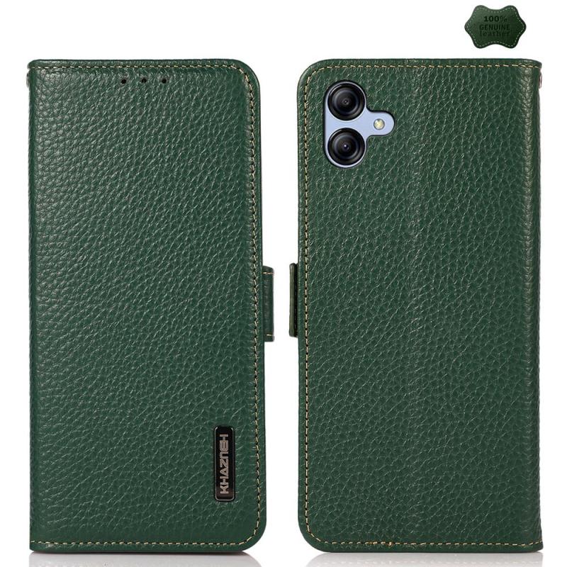 For Samsung Galaxy A07 5G KHAZNEH Side-Magnetic Litchi Genuine Leather RFID Phone Case(Green)