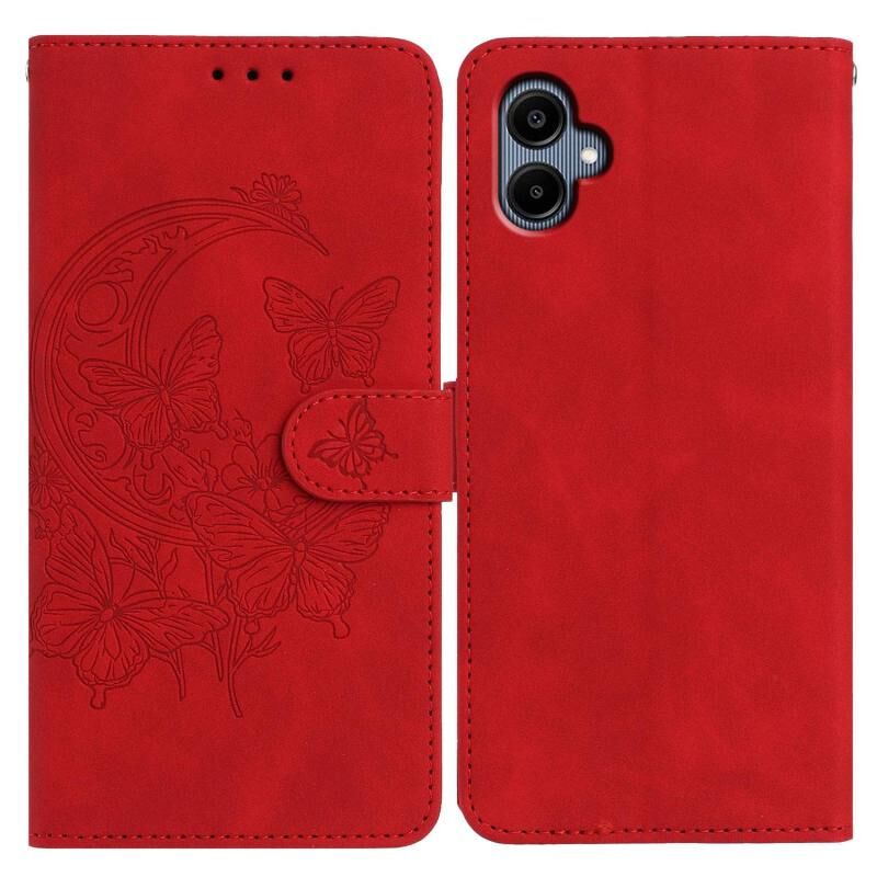 Θήκη τηλεφώνου Samsung Galaxy A07 5G από δέρμα με ανάγλυφο σχέδιο χορού πεταλούδας σε φεγγαρόφωτο (Πράσινο)