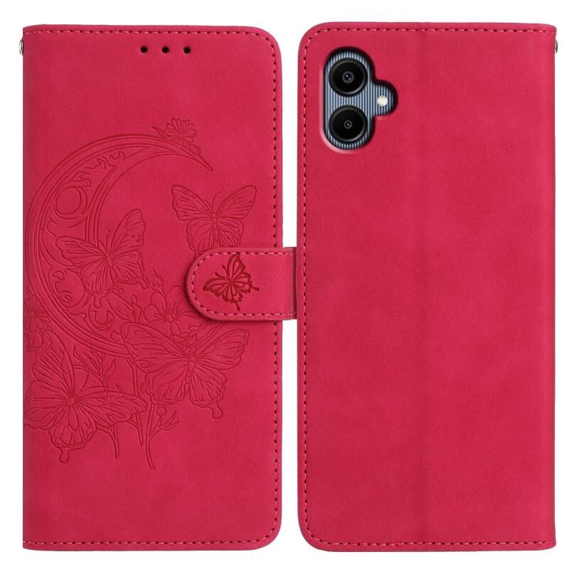 Θήκη τηλεφώνου Samsung Galaxy A07 5G από δέρμα με ανάγλυφο σχέδιο χορού πεταλούδας σε φεγγαρόφωτο (Πράσινο)
