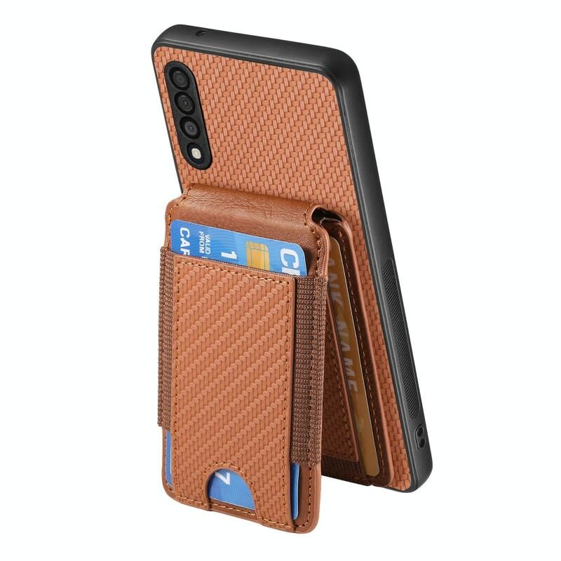 Για Samsung Galaxy A10 Carbon Fiber Κάθετη Flip Wallet Stand υπόθεση τηλεφώνου (καφέ)