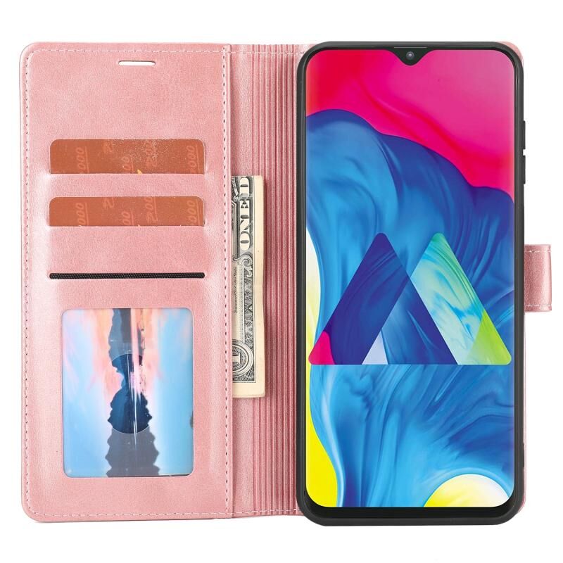Για Samsung Galaxy A10 Κλασική θήκη τηλεφώνου πορτοφόλι Flip δέρμα (ρόζ)