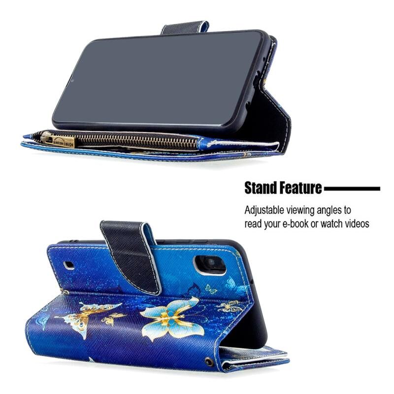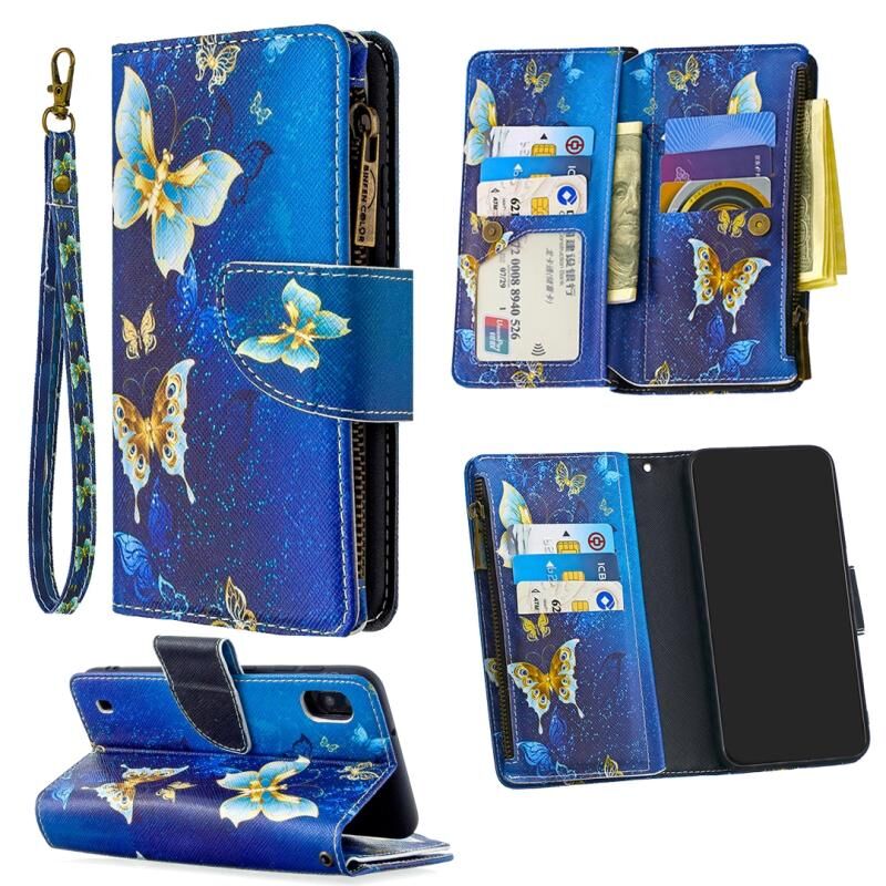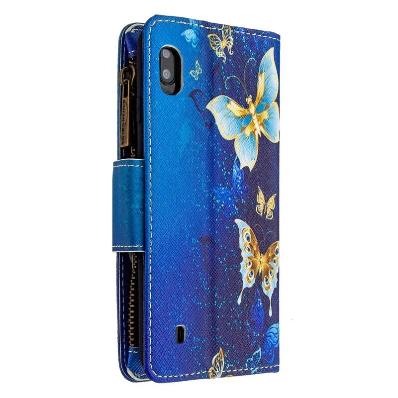 Θήκη Samsung Galaxy A10 Δερμάτινη Οριζόντια με Φερμουάρ, Πολύχρωμο Σχέδιο, με Θήκη & Θήκες Καρτών & Πορτοφόλι (Χρυσή Πεταλούδα)