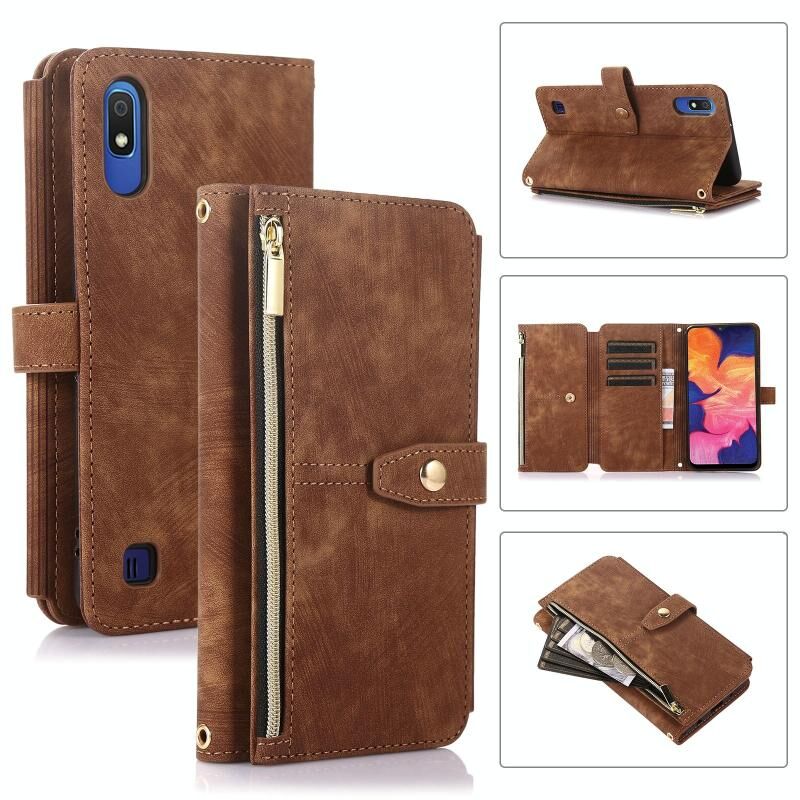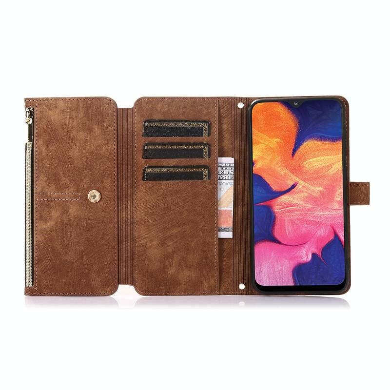 Για Samsung Galaxy A10 Dream 9-Card πορτοφόλι φερμουάρ τσάντα δέρμα τηλέφωνο υπόθεση (Καφέ)