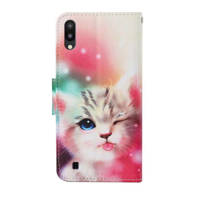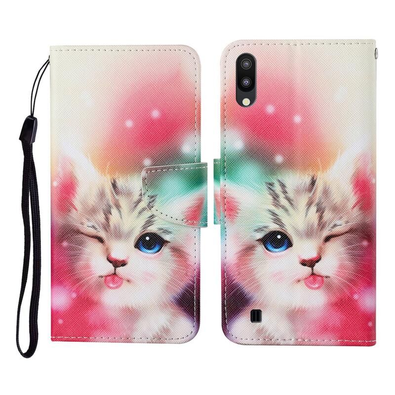 Θήκη δέρματος οριζόντιας αναδίπλωσης με σχέδια πολύχρωμης ζωγραφικής για Samsung Galaxy A10 / M10 με βάση στήριξης & υποδοχές καρτών & πορτοφόλι & κορδόνι (Κόκκινο)