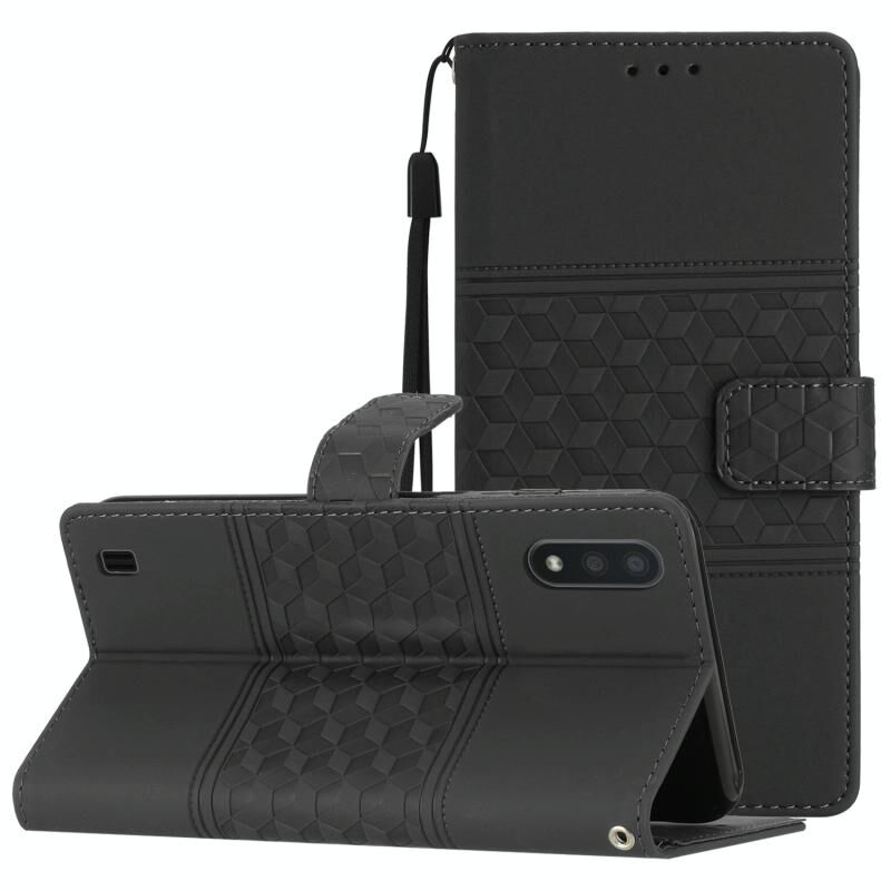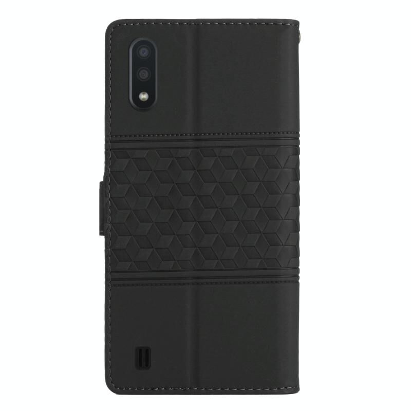 Για Samsung Galaxy A10 / M10 Diamond ανάγλυφο δέρμα αίσθηση δέρμα τηλέφωνο υπόθεση με κορδόνι (μαύρο)