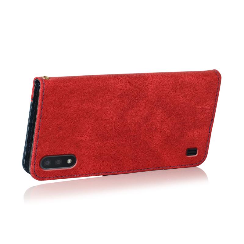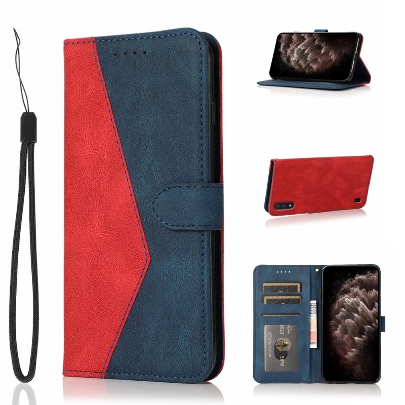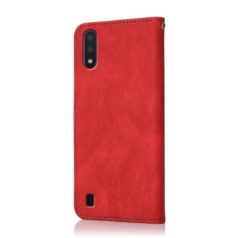 Θήκη τηλεφώνου δερμάτινη με διχρωμία ραφής για Samsung Galaxy A10 / M10 (Κόκκινο Μπλε)