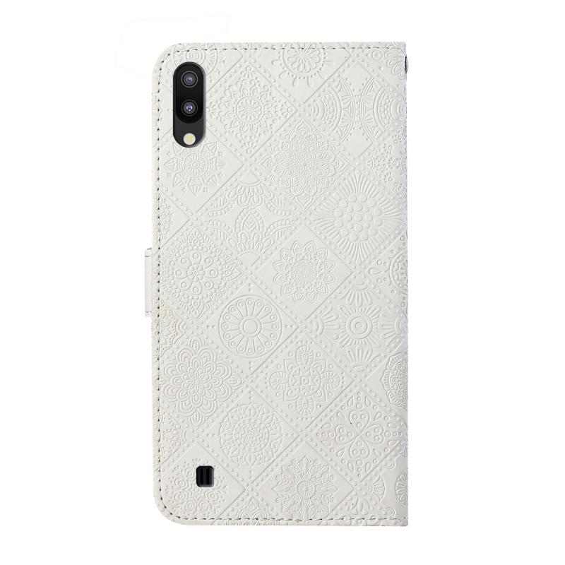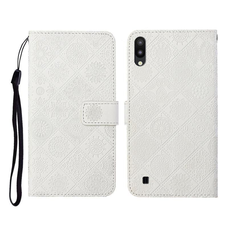 For Samsung Galaxy A10 / M10 Ethnic Style Embossed Pattern Horizontal Flip Leather Case with Holder & Card Slots & Wallet & Lanyard(White)