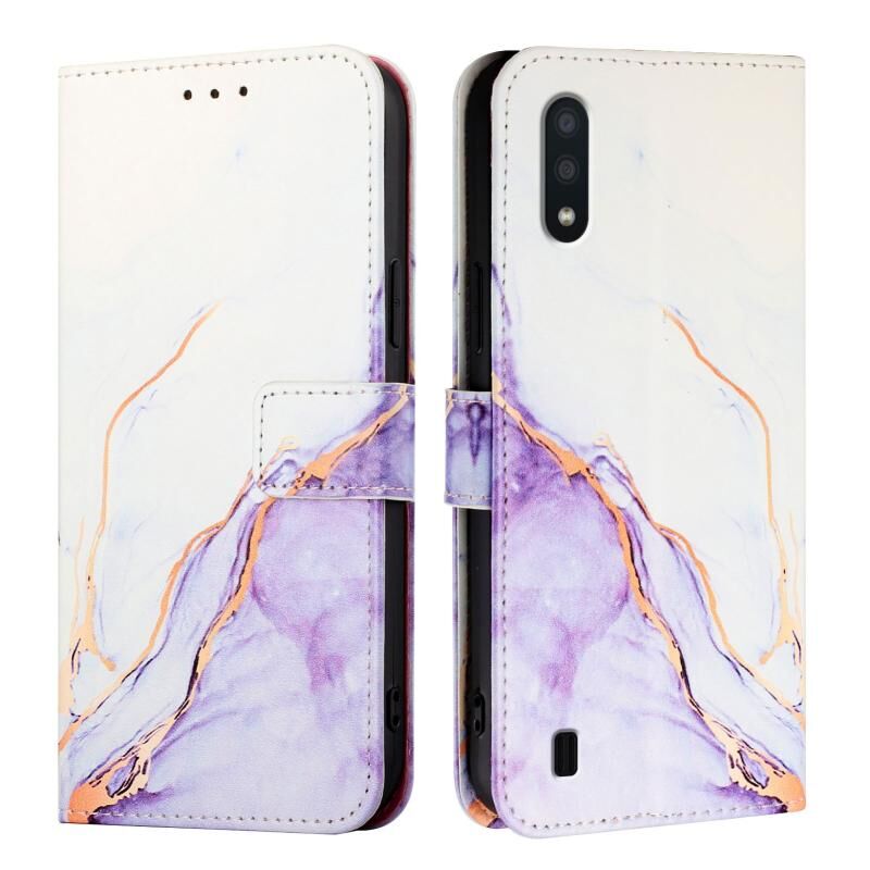 Θήκη τηλεφώνου Samsung Galaxy A10 / M10 EU PT003 με σχέδιο μάρμαρου, δερμάτινη, αναδιπλούμενη (Ροζ, Μωβ, Χρυσό)