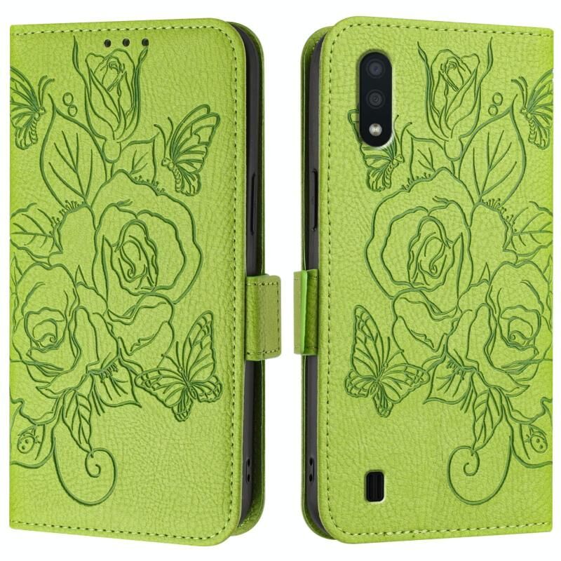 Για Samsung Galaxy A10 / M10 έκδοση ΕΕ ανάγλυφο Rose RFID Anti-theft Δερμάτινη θήκη τηλεφώνου (Πράσινο)