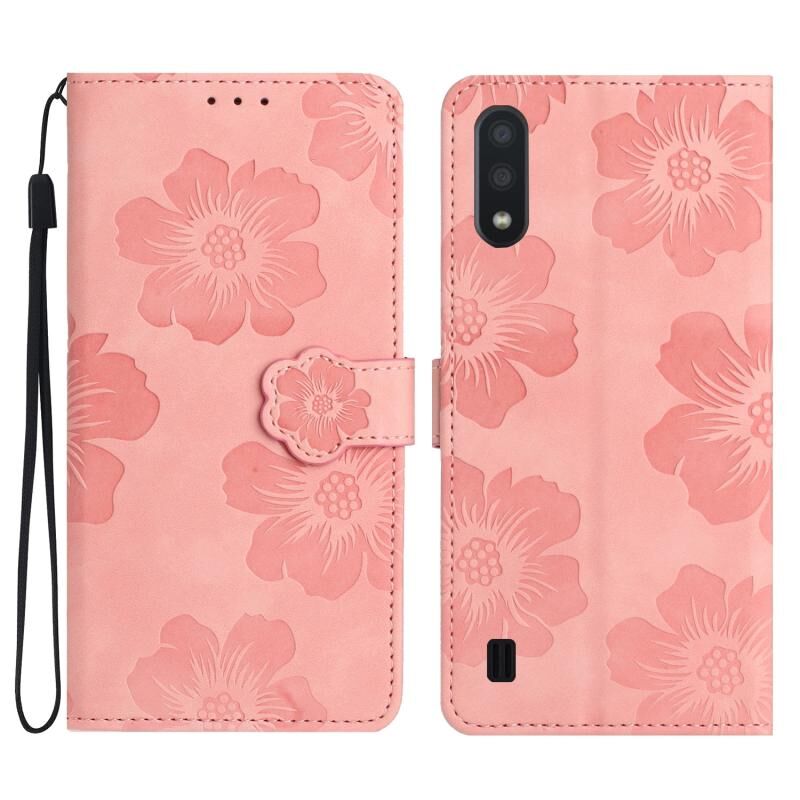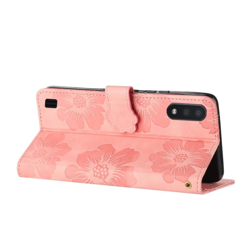 Για Samsung Galaxy A10 / M10 λουλούδι ανάγλυφο μοτίβο δερμάτινη θήκη τηλεφώνου (ροζ)