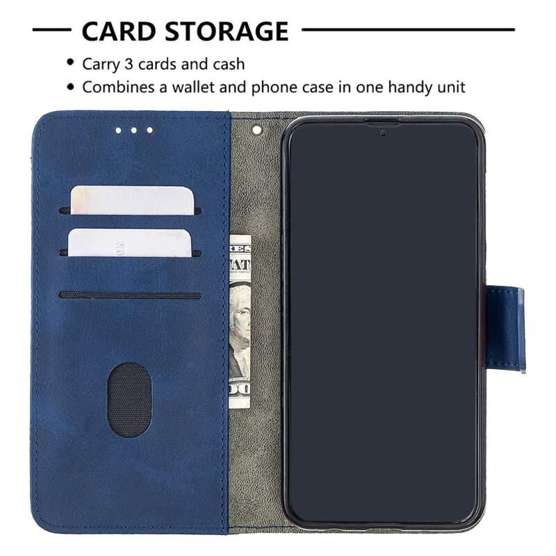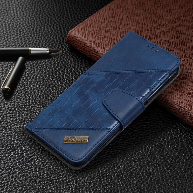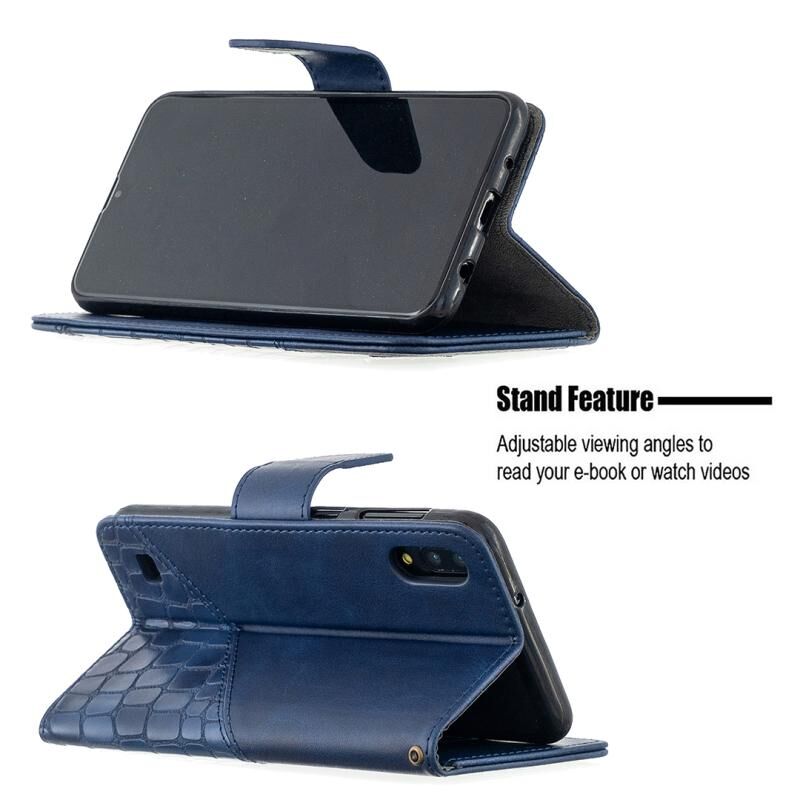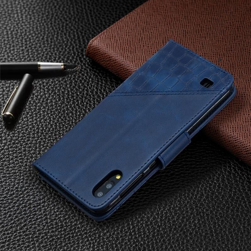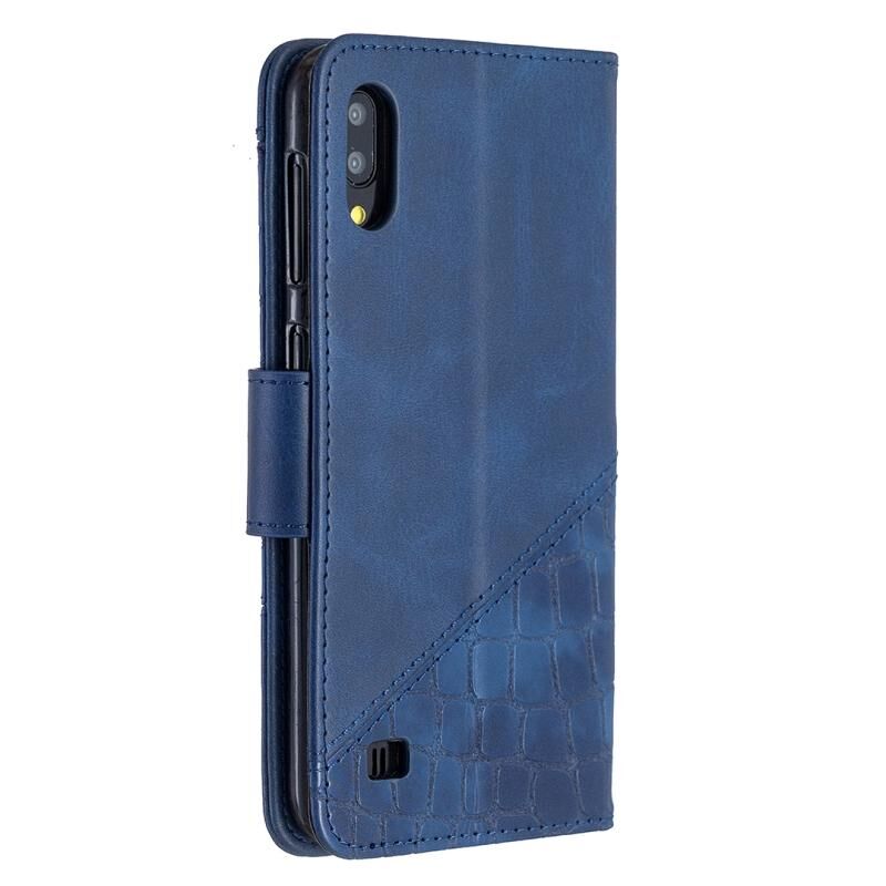 Θήκη Samsung Galaxy A10 / M10, οριζόντια, από δερματίνη PU με υφή κροκόδειλου, σε ταιριαστό χρώμα, με πορτοφόλι, βάση & θήκες για κάρτες (Μπλε)