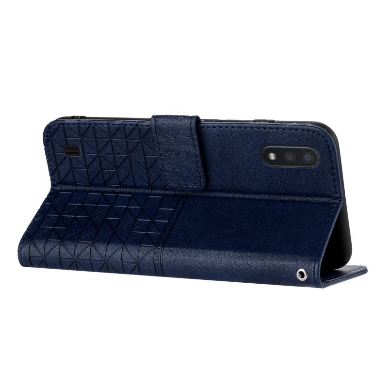 For Samsung Galaxy A10 / M10 Rhombic Texture Leather Phone Case with Lanyard(Blue)
