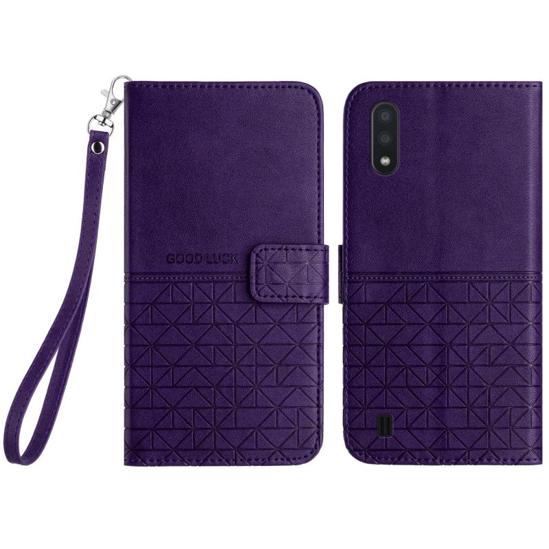 For Samsung Galaxy A10 / M10 Rhombic Texture Leather Phone Case with Lanyard(Purple)