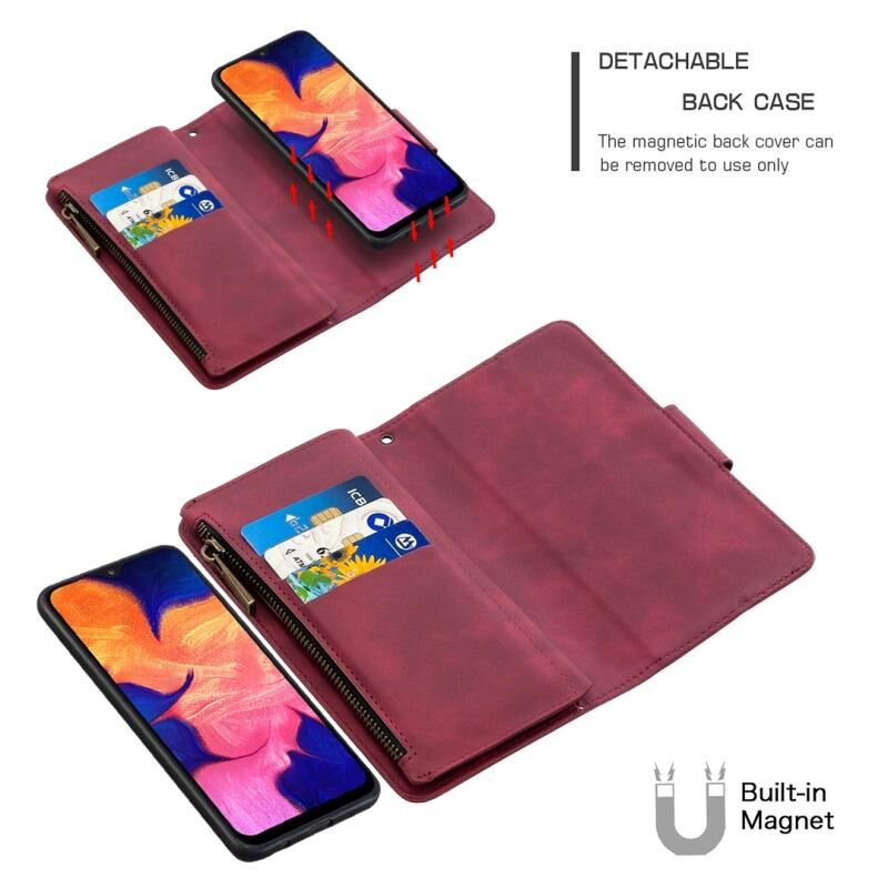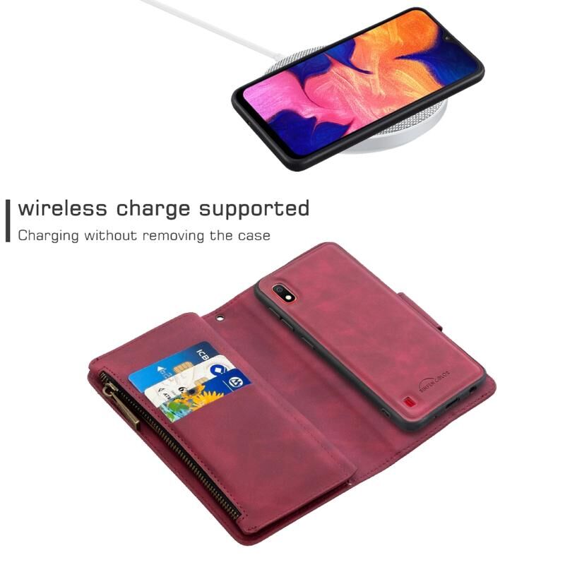 Για Samsung Galaxy A10 / M10 Skin Feel Αποσπώμενο μαγνητικό φερμουάρ Οριζόντια Flip PU δερμάτινη θήκη με υποδοχές πολλαπλών καρτών & θήκη & πορτοφόλι & κορνίζα φωτογραφιών & κορδόνι (κόκκινο)