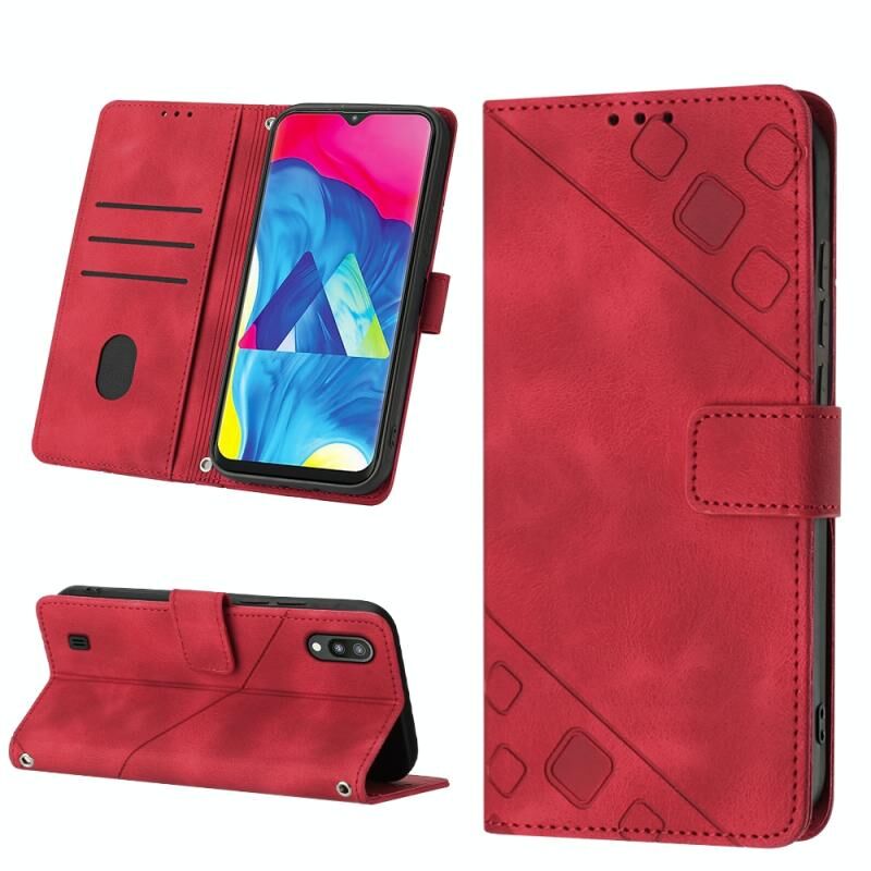 Για Samsung Galaxy A10 / M10 Skin-feel ανάγλυφη δερμάτινη θήκη τηλεφώνου (κόκκινο)