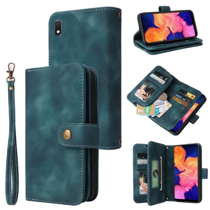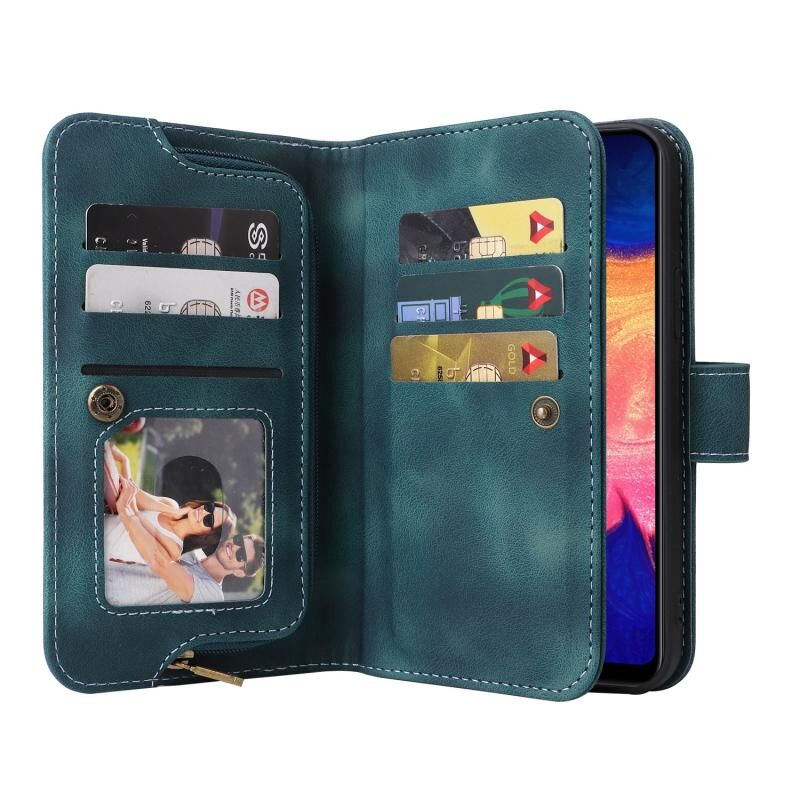Για Samsung Galaxy A10 Πολυλειτουργική κάρτα Slot φερμουάρ πορτοφόλι δερμάτινη θήκη τηλεφώνου (Μπλε)