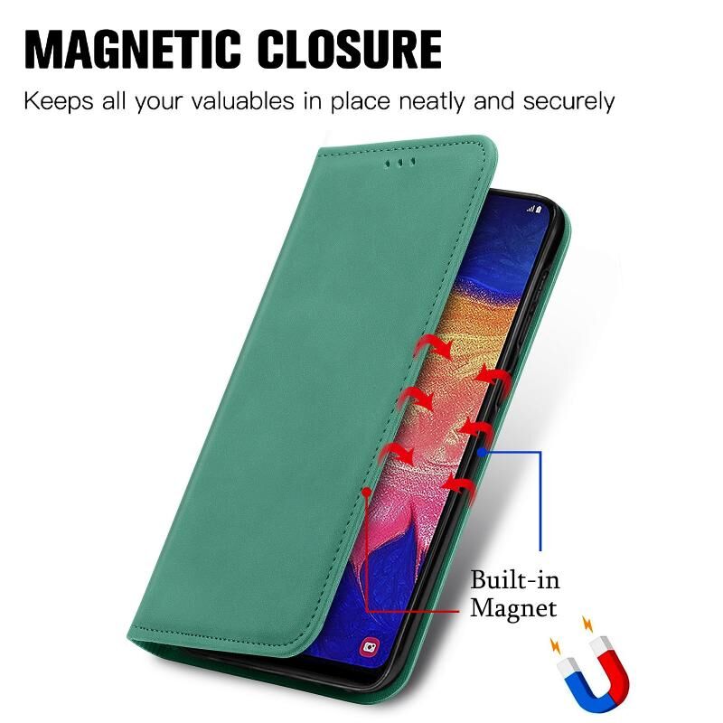 Για Samsung Galaxy A10 Retro Skin Feel Business μαγνητική οριζόντια Flip δερμάτινη θήκη με υποδοχές για κάρτες & πορτοφόλι & πλαίσιο φωτογραφιών (πράσινο)