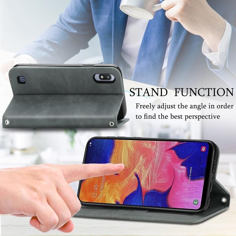 Για Samsung Galaxy A10 Retro Skin Feel Business Μαγνητική οριζόντια Flip δερμάτινη θήκη με υποδοχές για κάρτες & πορτοφόλι & κορνίζα φωτογραφιών (γκρι)