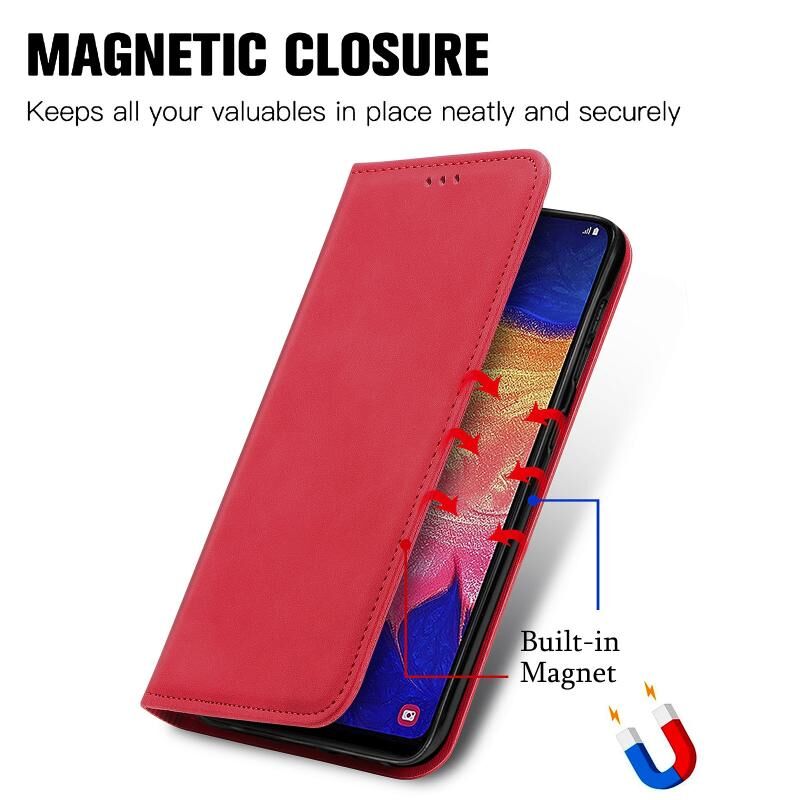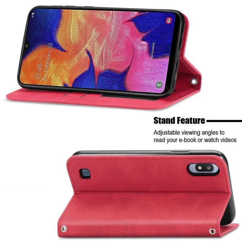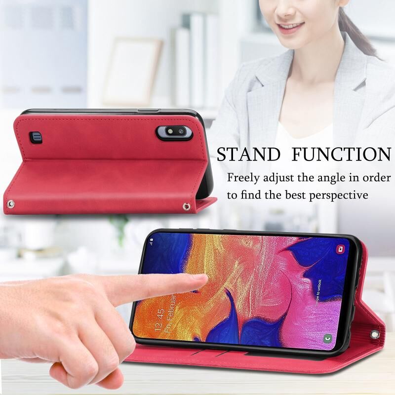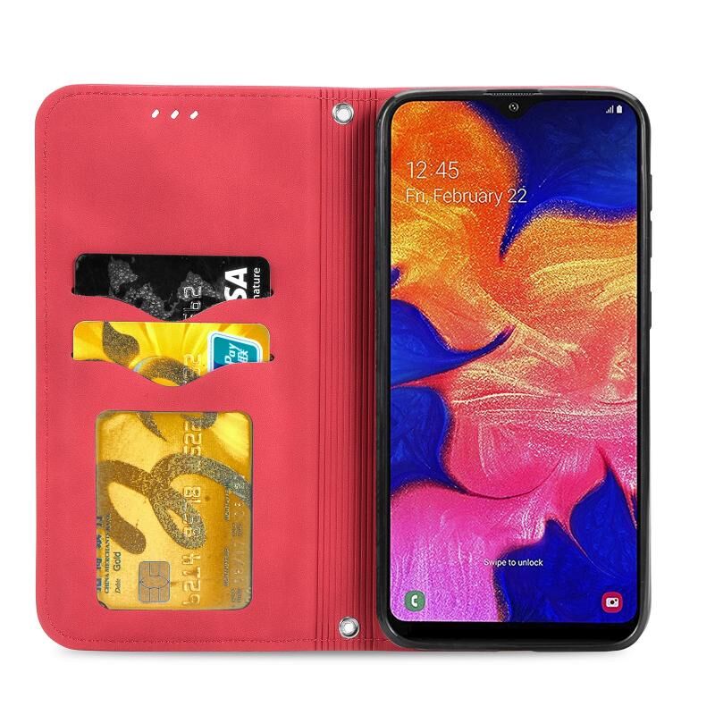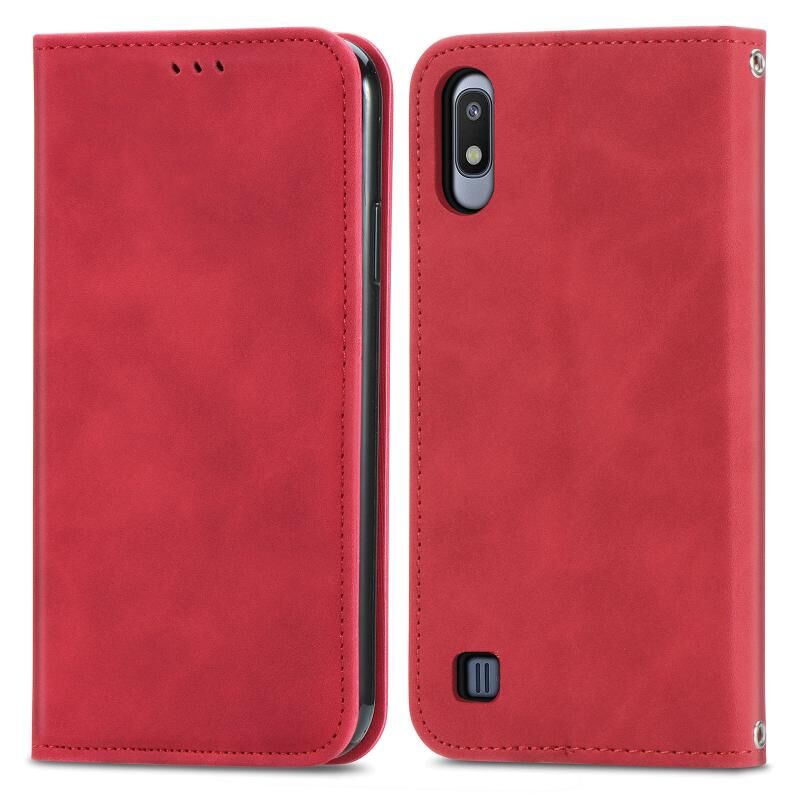 Για Samsung Galaxy A10 Retro Skin Feel Business μαγνητική οριζόντια Flip δερμάτινη θήκη με υποδοχές για κάρτες & πορτοφόλι & πλαίσιο φωτογραφιών (κόκκινο)