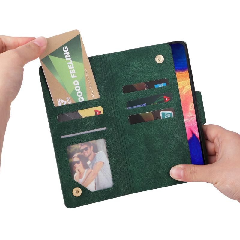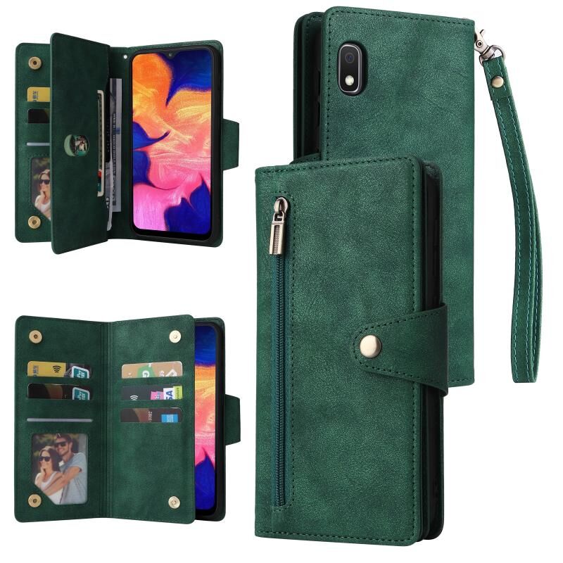 Για Samsung Galaxy A10 Rivet πόρπη 9 κάρτες τρεις φορές δερμάτινη θήκη τηλεφώνου (πράσινο)